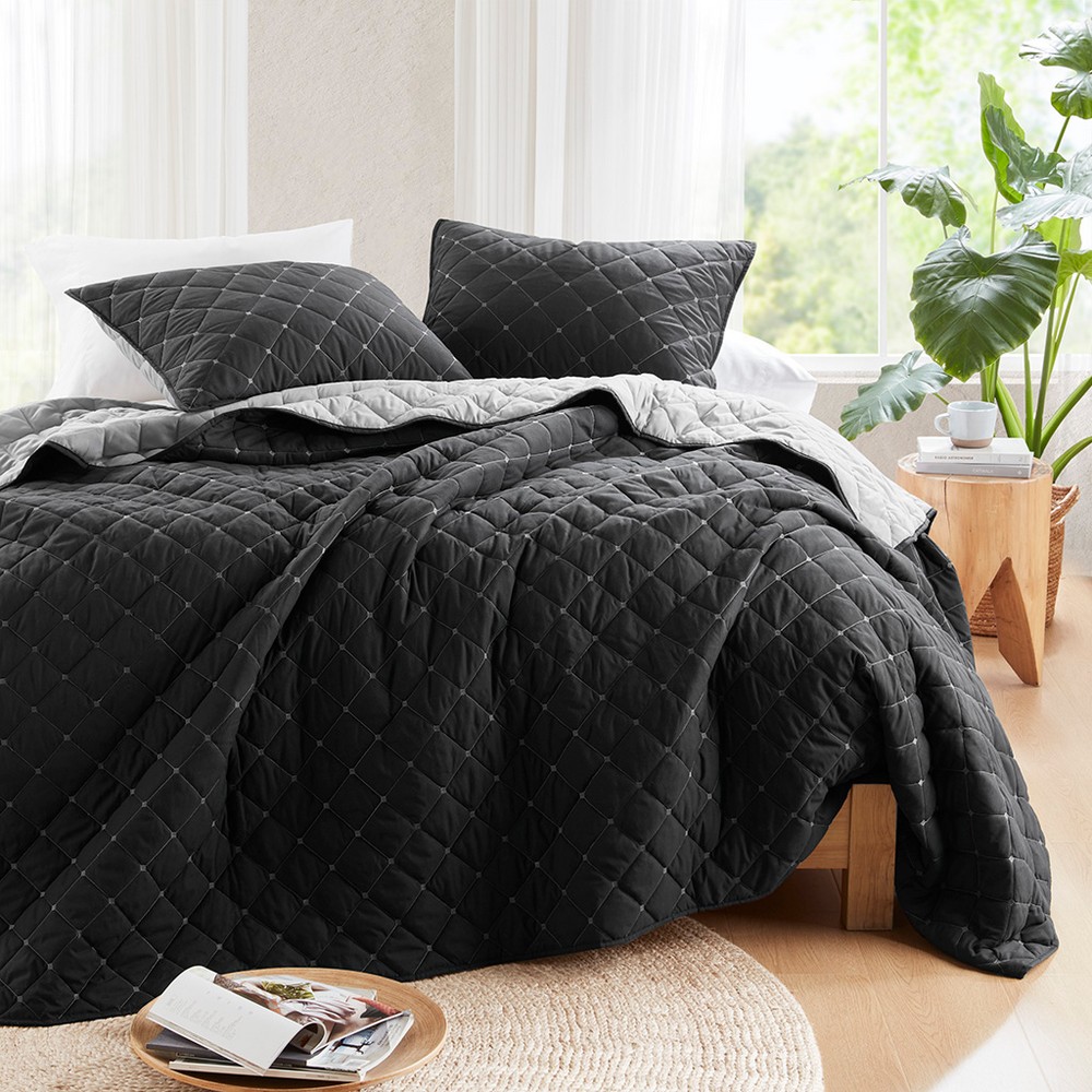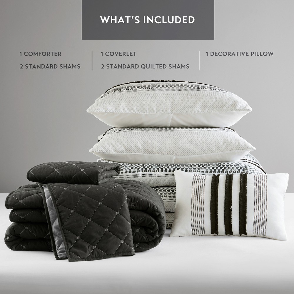 Carolina Black 7 Piece Stripe Comforter and Quilt Set Queen