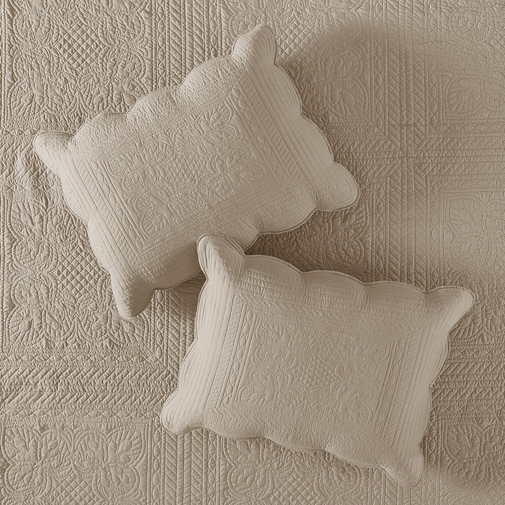 Tuscany Khaki 3 Piece Reversible Scalloped Edge Quilt Set King