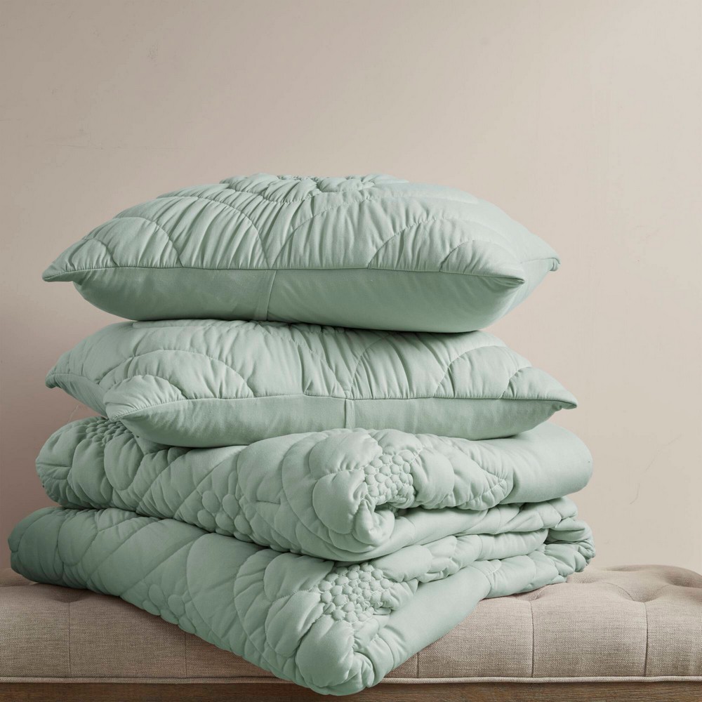 Embrace the cozy charm of this puffy comforter set, adorned with a floral pattern and shabby chic flair. The floral quilting adds texture and a cottage-inspired appeal while ensuring consistent warmth and cloud-like softness. Made from jersey knit fabric as soft as your favorite t-shirt, this set offers a lightweight, breathable feel for year-round comfort. Cool and airy in summer, it transforms into a plush, overfilled cocoon of snug warmth in winter. OEKO-TEX STANDARD 100 Certified for safety and wellness, it guarantees high-quality standards, and it's machine-washable design ensures effortless care.