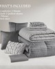 | Madison Park Queen 1 Comforter: 90"Wx90"L 2 Standard Shams: 20"Wx26"L(2) 1 Bed Skirt: 60"W x 80"L + 15"D 1 Decorative Pillow: 18"Wx18"L 1 Decorative Pillow: 16"Wx16"L 1 Decorative Pillow: 12"Wx18"L 1 Quilt: 90"Wx96"L 2 Quilted Shams: 20"Wx26"L(2) Comforter/Sham: Polyester jacquard face and microfiber solid back Comforter Fill: Polyester fill Pillow: Polyester Quilt: microfiber, poly fill Glam/Luxury Style Includes 10 Piece(s) Machine Washable Experience the perfect blend of comfort and luxury with this 10-piece ensemble, featuring a lustrous geometric jacquard comforter paired with a cozy quilt. Complete with matching shams, décor pillows, and a tailored bed skirt, this set offers timeless elegance. The Greek fret jacquard design, woven with metallic thread detailing, adds an elegant shine, while premium polyester ensures softness, durability, and comfort. OEKO-TEX STANDARD 100 Certified and free from harmful substances, it provides all-season comfort with a lightweight, fluffy feel and a versatile quilt for year-round use. Designed for effortless care, the set is machine washable, with spot-cleaning recommended for the decorative pillows. This set transforms your bedroom into a haven of refined elegance and luxury. |