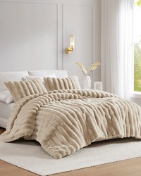 Jasmine Taupe Ultrasoft Faux Fur Ribbed Comforter Set King