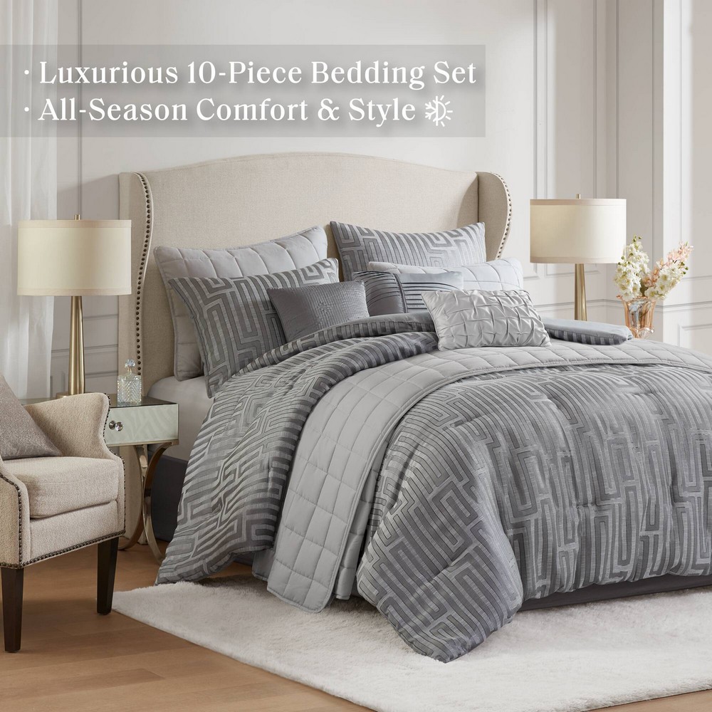 Royce Grey 10 Piece Luxury Jacquard Comforter Set King