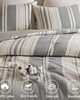 | Woolrich King/Cal King 1 Comforter: 106"W x 94"L 2 King Shams: 20"W x36"L(2) Face: 100% cotton jacquard waffle Back: 144TC 100% cotton plain solid Filling: 100% polyester 270 GSM Boho Style Includes 3 Piece(s) Machine wash in cold water at a gentle setting. Wash separately. Do not bleach. Tumble dry low. Do not iron. Crafted from ultra-soft 100% cotton gauze with a solid reverse, this oversized comforter offers breathable softness that improves with each wash. The timeless waffle and gauze weave adds effortless charm and texture, creating a truly inviting atmosphere. Filled with plush poly-fill for cloud-like fluff, it ensures all-season warmth and comfort. Reinforced bartack dash-stitching prevents clumping, maintaining an even, cozy feel. Certified by OEKO-TEX STANDARD 100, it is free from harmful substances for safe, worry-free sleep. Designed for easy care, simply machine wash cold and tumble dry low for lasting freshness. |