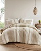 | Woolrich King/Cal King 1 Comforter: 106"W x 94"L 2 King Shams: 20"W x36"L(2) Face: 100% cotton jacquard waffle Back: 144TC 100% cotton plain solid Filling: 100% polyester 270 GSM Boho Style Includes 3 Piece(s) Machine wash in cold water at a gentle setting. Wash separately. Do not bleach. Tumble dry low. Do not iron. Crafted from ultra-soft 100% cotton gauze with a solid reverse, this oversized comforter offers breathable softness that improves with each wash. The timeless waffle and gauze weave adds effortless charm and texture, creating a truly inviting atmosphere. Filled with plush poly-fill for cloud-like fluff, it ensures all-season warmth and comfort. Reinforced bartack dash-stitching prevents clumping, maintaining an even, cozy feel. Certified by OEKO-TEX STANDARD 100, it is free from harmful substances for safe, worry-free sleep. Designed for easy care, simply machine wash cold and tumble dry low for lasting freshness. |