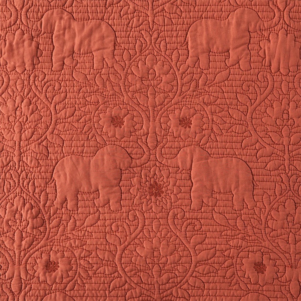 | Ink+ivy King/Cal King 1 Quilt: 104"W x 92"L 2 King Shams: 20"W x 36"L (2) Quilt/Sham: Cotton percale, 90% cotton, 10% other polyester filling Boho Style Includes 1 Piece(s) Machine wash cold, gentle cycle, and separately. Do not bleach. Tumble dry low, remove promptly. Do not iron. If there is no free movement in the washer or dryer, use large capacity commercial washer/dryer. Decorative Pillow: Spot clean The INK+IVY Kandula Quilt Set provides all the elements of a unique, casual look for your bedroom. The rich coral color is accentuated with dark quilting featuring adorable elephants and flowers. The reverse side is a lighter off white color while the quilting remains dark colored for a completely different look on the reverse. Whether you are using this quilt as a layering piece to your current set or as a focal piece all on its own, the Kandula collection is sure to be a hit in your space. |
