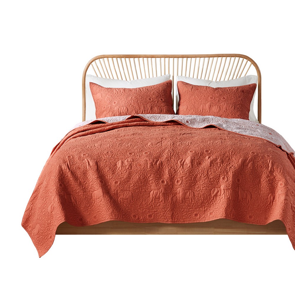 Kandula Coral 3 Piece Reversible Cotton Quilt Set King