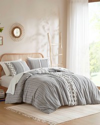 Imani Gray Cotton Printed Comforter Set with Chenille King