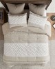 | Ink+ivy King/Cal King 1 Comforter: 104"W x 92"L 2 King Shams: 20"W x 36"L (2) Comforter/Sham: 100% Cotton, printed and tufted with chenille, solid cotton reverse, comforter filling: yard poly, front hidden bar tack. Sham with overlap closure at back. Boho Style Includes 3 Piece(s) Machine wash cold separately, gentle cycle. Tumble dry low. Do not bleach. Do not iron. Commercial washer and dryer recommended to provide ample room for movement Transform your bedroom with the charming shabby chic allure of the INK+IVY Mila 3 Piece Cotton Comforter Set with Chenille Tufting. The cotton comforter flaunts an updated taupe botanic print, on a natural white ground, with tufted white chenille, in a chevron design, to create a charming farmhouse look. A solid taupe reverse complements the top of the comforter, while hidden bartacking secures the hypoallergenic polyester filling without visible line for a clean finish. Two matching shams beautifully mimic the design of the comforter, completing the farmhouse comforter set. Machine washable, this cotton tufted comforter set offers soft comfort and a vivid touch that elevates your bedroom decor. This comforter is OEKO-TEX certified, meaning it does not contain any harmful substances or chemicals to ensure quality comfort and wellness. |