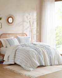 Imani White/Navy Cotton Printed Comforter Set with Chenille King