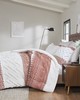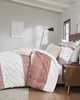 | Ink+ivy King/Cal King 1 Comforter: 106"W x 94"L 2 King Shams: 20"W x 36"L(2) Comforter/Sham: 100% Cotton, printed and tufted with chenille, solid cotton reverse Fill: 100% polyester Boho Style Includes 3 Piece(s) Machine wash cold separately, gentle cycle. Tumble dry low. Do not bleach. Do not iron. Commercial washer and dryer recommended to provide ample room for movement Transform your bedroom with the charming shabby chic allure of the INK+IVY Mila 3 Piece Cotton Comforter Set with Chenille Tufting. The cotton comforter flaunts an updated auburn botanic print, on a natural white ground, with tufted white chenille, in a chevron design, to create a charming farmhouse look. A solid auburn reverse complements the top of the comforter, while two matching shams beautifully mimic the design of the comforter, completing the farmhouse comforter set. Machine washable, this cotton tufted comforter set offers soft comfort and a vivid touch that elevates your bedroom decor. This bedding set is also OEKO-TEX certified, meaning it does not contain any harmful substances or chemicals, ensuring quality comfort and wellness. |