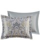 | Harbor House Full/Queen 1 Duvet Cover: 90"W x 90"L 2 Standard Shams: 20"W x 26"L + 2"D (2) 1 Decorative Pillow: 18"W x 18"L 1 Decorative Pillow: 12"W x 20"L Duvet and sham Face: 100% cotton sateen T300 printed Back: T180 cotton solid Square & oblong pillow: 100% cotton with emb on top, hidden zipper closure, 100% poly fill Traditional Style Includes 1 Piece(s) Machine Washable, Spot Clean Pillows The Harbor House Hallie 5 Piece Cotton Duvet Cover Set introduces an elegant and traditional allure to your bedroom décor. Flaunting a beautiful damask pattern in grey hues with hints of blue and yellow, the oversized cotton duvet cover features a solid grey reverse to complement the top of the bed. Two cotton shams reiterate the damask print seen on the duvet cover, creating a beautiful coordinated look. To complete the bedding set are two decorative pillows with embroidered details provide the finishing touch. Made from soft cotton sateen, this duvet cover set will easily transform your bedroom into a stunning and lavish retreat. Button closures allow you to place a comforter insert (insert not included) within the duvet cover, while 4 internal corner ties prevent it from shifting. This bedding set is also OEKO-TEX certified, meaning it does not contain any harmful substances or chemicals, ensuring quality comfort and wellness. |