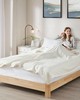 | Serta King 1 Heated Blanket: 100"W x 90"L Face: solid fleece, 100% polyester; Back: ivory sherpa, 100% polyester Casual Style Includes 1 Piece(s) Machine Wash The Serta Fleece to Sherpa Heated Blanket offers incredible comfort and warmth to keep you extra cozy in bed. This heated blanket features an ultra-soft fleece face with a cozy Sherpa reverse, for extra comfort. A controller with 10 heat settings provides the perfect amount of warmth, while the 1-12 hour automatic shut-off timer helps ensure your safety. Machine washable for easy care, this heated blanket brings cozy comfort and a cottage style update to your space. Twin and Full size have one controller, Queen and King size have 2 controllers. Includes manufacturer's 5-year warranty. |