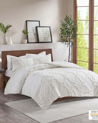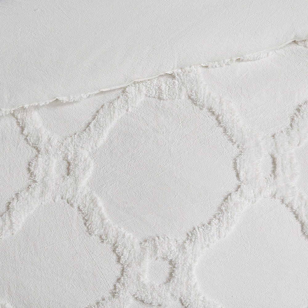 Pacey Off-White 3 Piece Tufted Cotton Chenille Geometric Comforter Set Queen