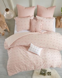 Brooklyn Pink Cotton Jacquard Comforter Set with Euro Shams and Throw Pillows King