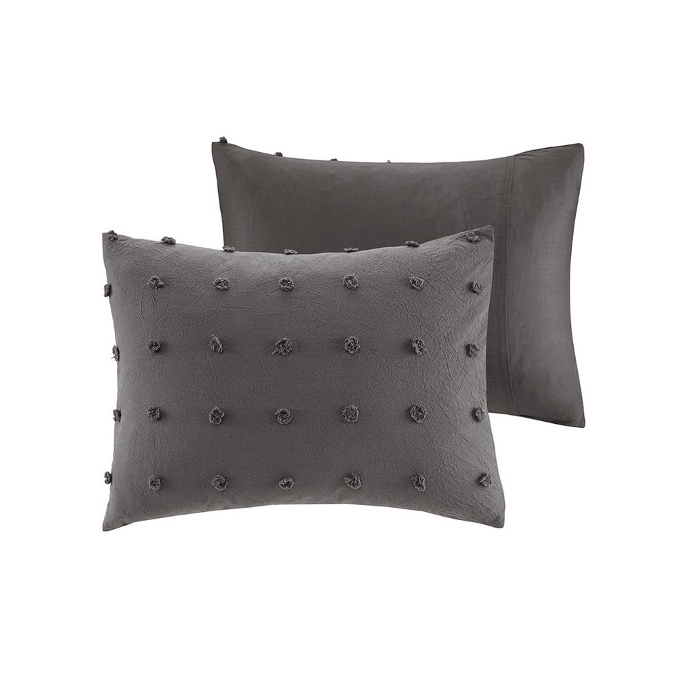 Brooklyn Charcoal Cotton Jacquard Comforter Set with Euro Shams and Throw Pillows King