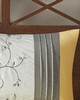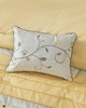 Elegantly update your bedroom with the Madison Park Serene 7 Piece Comforter Set. A beautifully embroidered floral pattern is showcased on the faux silk comforter. The pieced design, in yellow and grey hues, adds a lovely contrast and texture to the ensemble. The solid dark grey reverse complements the enticing design seen on the top of the comforter and continues gracefully down to the bed skirt. Matching shams bring the unique style of the comforter to the head of the bed, giving it a truly luxurious look. Three decorative pillows with intricate embroidery, pleating, and piecing, complete this exquisite comforter set. Items in the set may come in a rolled or compressed packaging, which will need to be fluffed up or steam ironed before use to remove wrinkles.