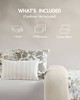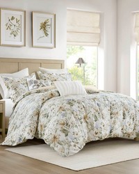 | Harbor House King/Cal King 1 Duvet: 106"W x 92"L 2 King Shams: 20"W x 36"L (2) 1 Decorative Pillow: 18"W x18"L 1 Decorative Pillow: 12"W x20"L Duvet/sham face: 300TC 100% cotton sateen print back: 144TC 100% cotton solid Dec pillow: 100% cotton with polyfill Style Includes 5 Piece(s) Machine washable Add modern elegance to your space with a vibrant and nature-inspired floral print and a sophisticated sheen finish, complete with matching shams and décor pillows featuring intricate embroidery. Both pillows come with removable inserts for easy upkeep. Made from breathable, 100% natural cotton, this set offers year-round comfort and softness, inviting you to unwind. The high-density 300TC cotton sateen weave enhances durability. Slip on the duvet cover for lightweight, breathable all season cotton comfort. Designed with inner ties and a button closure to keep your insert securely in place. Oeko-Tex certified for wellness, it's also machine washable for easy care. |