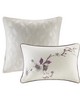 | Madison Park Cal King 1 Comforter: 104"W x 92"L 2 King Shams: 20"W x 36"L (2) 1 Bed skirt: 72"W x 84"L + 15"D 2 Euro Shams: 26"W x 26"L + 2"D (2) 1 Decorative Pillow: 18"W x 18"L 1 Decorative Pillow: 12"W x 18"L 200TC cotton sateen, printed, 8oz/sq yard polyester filling, cotton/polyester crossweave reverse; Transitional Modern Style Includes 8 Piece(s) Machine washable, spot clean pillows The Madison Park Holly 8 Piece Comforter Set will transform your bedroom décor with charm and elegance. The cotton sateen fabric has a greyish taupe diamond background with a lovely floral print in purple, greys, and soft whites on the comforter and shams, for a graceful transitional look. The two Euro shams and solid bed skirt in a deep purple harmonize the whole look. Two decorative pillows in purples, taupes, and greys with embroidered details add texture and dimension to the bed. This bedding set is also OEKO-TEX certified, meaning it does not contain any harmful substances or chemicals to ensure quality comfort and wellness. |