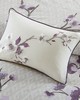 | Madison Park King 1 Comforter: 104"W x 92"L 2 King Shams: 20"W x 36"L (2) 1 Bed skirt: 78"W x 80"L + 15"D 2 Euro Shams: 26"W x 26"L + 2"D (2) 1 Decorative Pillow: 18"W x 18"L 1 Decorative Pillow: 12"W x 18"L 200TC cotton sateen, printed, 8oz/sq yard polyester filling, cotton/polyester crossweave reverse; Transitional Modern Style Includes 8 Piece(s) Machine washable, spot clean pillows The Madison Park Holly 8 Piece Comforter Set will transform your bedroom décor with charm and elegance. The cotton sateen fabric has a greyish taupe diamond background with a lovely floral print in purple, greys, and soft whites on the comforter and shams, for a graceful transitional look. The two Euro shams and solid bed skirt in a deep purple harmonize the whole look. Two decorative pillows in purples, taupes, and greys with embroidered details add texture and dimension to the bed. This bedding set is also OEKO-TEX certified, meaning it does not contain any harmful substances or chemicals to ensure quality comfort and wellness. |