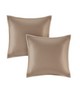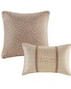 | Madison Park King 1 Comforter: 104"W x 92"L 2 King Shams: 20"W x 36"L+1"D (2) 1 Bedskirt: 78"W x 80"L + 15"D 2 Euro Shams: 26"W x 26"L + 0.5"D (2) 1 Decorative Pillow: 12"W x 18"L 1 Decorative Pillow: 18"W x 18"L Polyester faux silk, pieced, 8oz/sq yard polyester filling, bedskirt with 15"drop Glam/Luxury Style Includes 8 Piece(s) Machine Washable, Spot Clean Pillows Update your bedroom with the Madison Park Camelia 8 Piece Embroidered Comforter Set. The faux silk pieced comforter and shams flaunt a geometric embroidery design that adds charm and texture to the top of the bed. Two polyoni Euro shams provide a rich color to the bedding set, while a coordinating bed skirt offers a clean and crisp finish. Decorative pillows feature embroidered details that help complete the ensemble. |