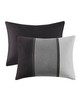 | Madison Park Cal King 1 Comforter: 104"W x 92"L 2 King Shams: 20"W x 36"L (2) 1 Bedskirt: 72"W x 84"L + 15"D 1 Decorative Pillow: 18"W x 18"L 1 Decorative Pillow: 16"W x 16"L 1 Decorative Pillow: 12"W x 18"L Faux suede face, microfiber back comforter and shams, polyester filling; faux suede bedskirt and pillows Transitional Modern Style Includes 7 Piece(s) Machine Washable. Spot Clean Pillows The Madison Park Palisades 7 Piece Faux Suede Comforter Set offers you a casual alternative in fashion bedding. The reverse of the comforter is solid black. The soft microsuede in light grey, charcoal, and black is pieced together to create this beautiful bed. The decorative pillows are embroidered and pieced to add a decorative element to this simple, yet beautiful bedding collection. With hypoallergenic filling in the comforter and pillows, this stylish comforter set easily refreshes your bedroom decor and is machine washable for easy care. Items in the set may come in a rolled or compressed packaging, which will need to be fluffed up or steam ironed before use to remove wrinkles. |