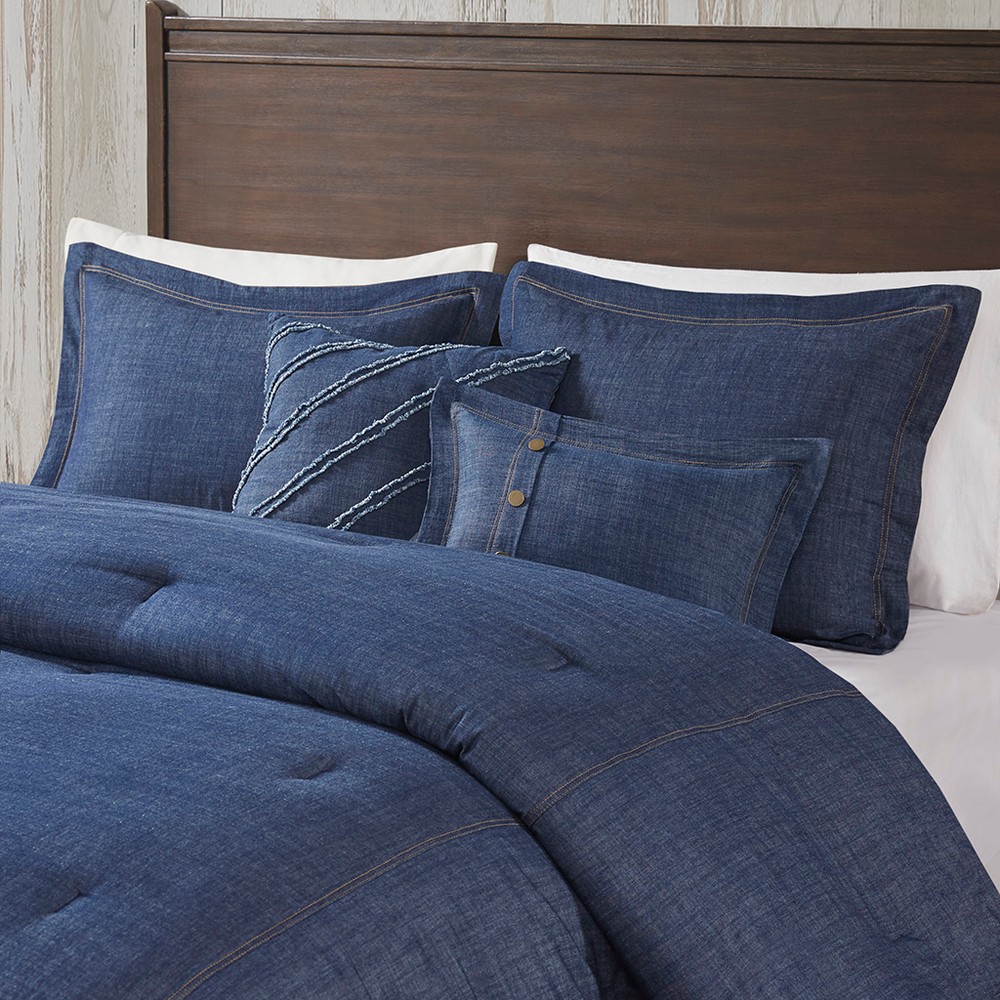 | Comforter & Sham: 100% cotton denim face, 100% cotton percale reverse |