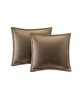| Madison Park King 1 Comforter: 110"W x 96"L 2 King Shams: 21"W x 37"L (2) 2 Euro Shams: 26"W x 26"L + 2"D (2) 1 Bedskirt: 78"W x 80"L + 15"D 1 Decorative Pillow: 12"W x 18"L 1 Decorative Pillow: 18"W x 18"L 1 Decorative Pillow: Dia.6.5" x 18"L COMFORTER: poly charmeuse face with quilting, brushed polyester reverse, 8oz polyfill, bar tacking SHAM: poly charmeuse with quilting, brushed polyester reverse, 4" overlap opening at back BEDSKIRT: poly charmeuse drop with pleats at each side, polyeste Traditional Style Includes 9 Piece(s) Machine wash cold, gentle cycle, and separately. Do not bleach. Tumble dry low, remove promptly. Do not iron. If there is no free movement in the washer or dryer, use large capacity commercial washer/dryer. For the more traditional bedroom, spruce up your décor with a pop of color in the Juliana Comforter Set. Made from polyester quilted charmeuse, this decorative collection features chocolate brown, light blue and ivory accents. Includes three decorative pillows which play up embroidered details for a finished look. Two euro shams give a dramatic backdrop to this striking collection. |