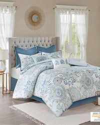 Isla Blue 8 Piece Cotton Floral Printed Reversible Comforter Set King