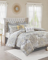 Isla Yellow 8 Piece Cotton Floral Printed Reversible Comforter Set King