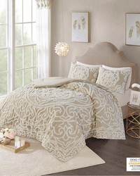 Laetitia Taupe Tufted Cotton Chenille Medallion Comforter Set King