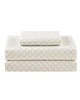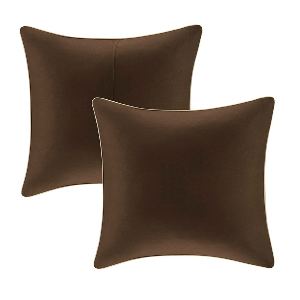 | Madison Park Essentials King 1 Comforter: 104"W x 92"L 2 Standard Shams: 20"W x 36"L (2) 1 Bedskirt: 78"W x 80"L + 15"D 2 Euro Shams: 26"W x 26"L + 2"D (2) 2 Flat Sheets: 108"W x 102"L (2) 2 Fitted Sheets: 78"W x 80"L + 14"D (2) 4 Pilllowcases: 20"W x 40"L (4) 1 Decorative Pill Poly jacquard face and soft microfiber reverse, polyester filling, solid microfiber bedskirt and euros Two sheet set: one printed microfiber sheet set and one solid sheet set Traditional Style Includes 16 Piece(s) Comforter Set/Sheet Set: machine washable Pillows: spot clean Only The Madison Park Essentials Zara 16 Piece Jacquard Complete Bedding Set with 2 Sheet Sets offers a luxurious traditional update for your bedroom. An elegant jacquard design, in shades of brown, adorns the face on the comforter and a solid dark brown reverse complements the top of the bed. Two shams and two dark brown Euro shams perfectly complement the comforter, while three decorative pillows with embroidery and pintuck details and a solid brown bedskirt provide the finishing touches. Also included are two complete sheet sets with fitted sheets that fit up to 16-inch mattress depth. One sheet set showcases a medallion print and the other is a solid brown that coordinate back to the jacquard bedding set. Bringing the best in health and wellness, this bedding set also features an anti-microbial treatment that provides built-in freshness protection, reducing the growth of odor causing bacteria and keeps fabric lasting longer. Filled with hypoallergenic filling in the comforter and decorative pillows, this jacquard complete bedding set transforms your entire bedroom with its traditional style and is machine washable for easy care. This bedding set may come in rolled or compressed packing and will need to be fluffed up. Use a steam iron to help remove wrinkles easier. |