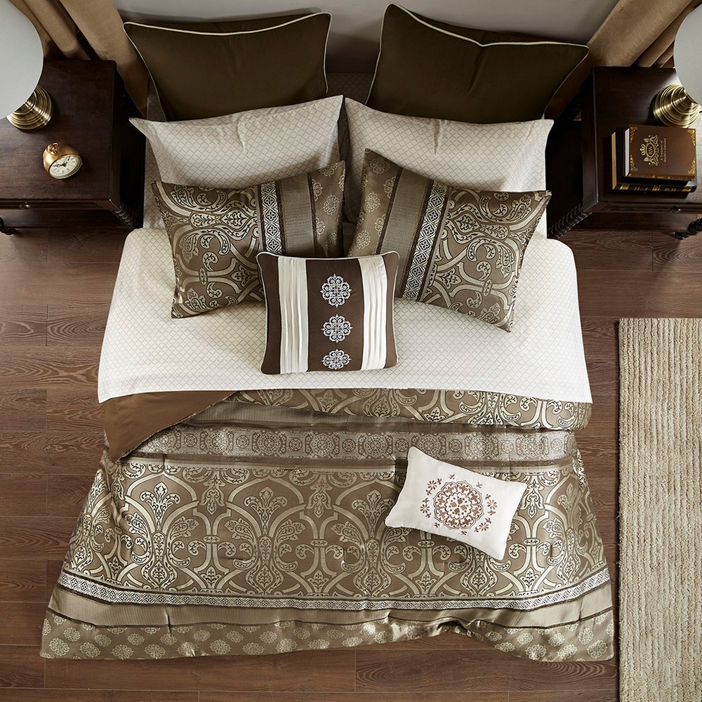 Zara Brown 16 Piece Jacquard Comforter Set with 2 Bed Sheet Sets King