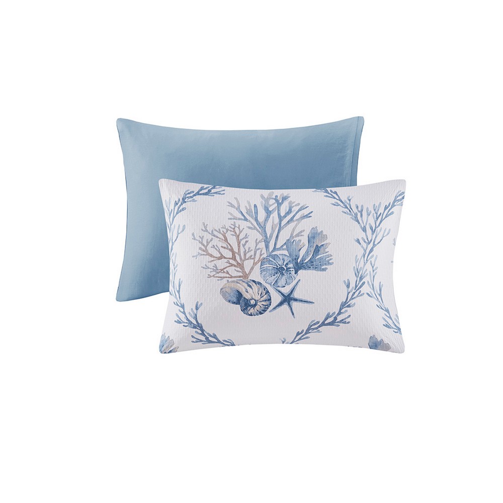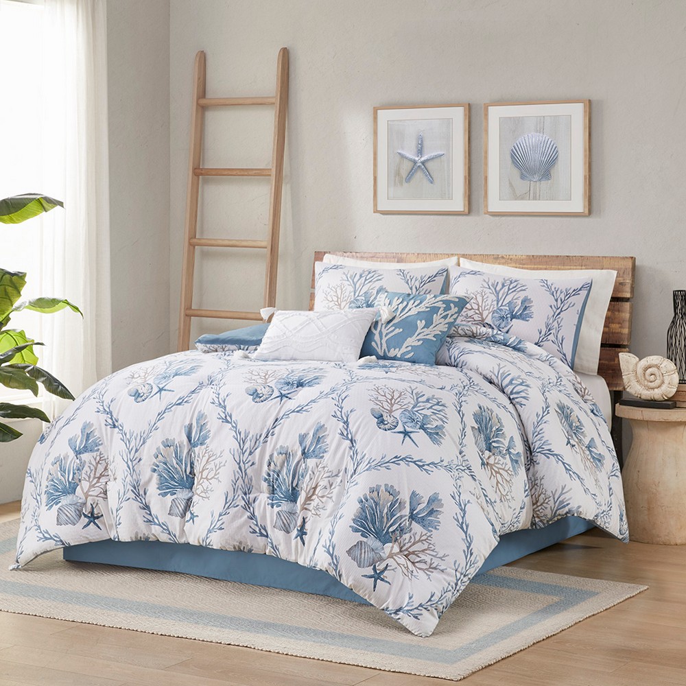 Pismo Beach Blue/White 6 Piece Oversized Cotton Comforter Set with Throw Pillows Full