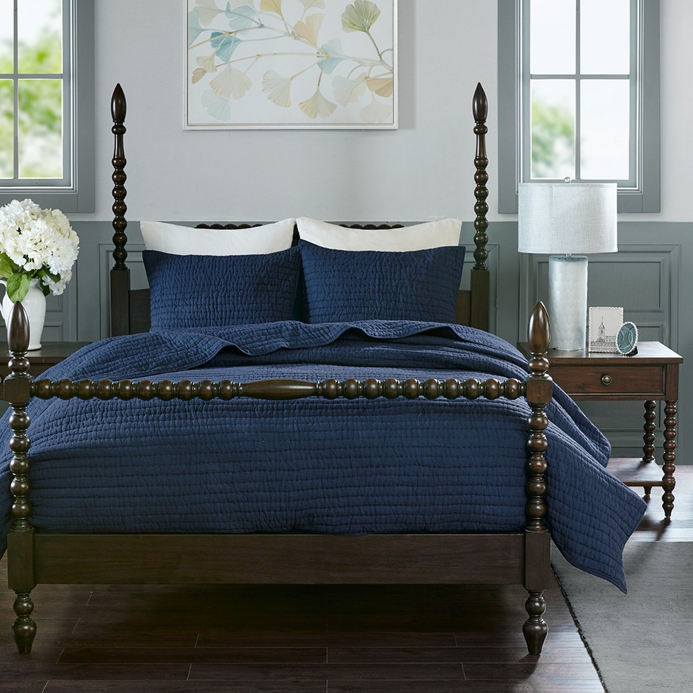 | Madison Park Signature Full/Queen 1 Quilt: 92"W x 96"L 2 Shams: 20"W x 26"L (2) 100% cotton voile, cotton batting; Transitional Modern Style Includes 3 Piece(s) Machine washable Sleep in luxurious comfort with Madison Park Signature’s Serene Cotton Hand Quilted Quilt Set. Made from soft cotton voile, this linen quilt features hand-quilted channel stitching that creates rich texture and dimension to the top of the bed. The cotton-rich filling in the quilt provides soft comfort, while two matching shams complete the bedding set. Perfect for use in summer or as an added layer in winter, this oversized quilted quilt is machine washable and offers simple luxury for your bedroom decor. |