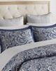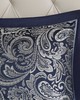 | Madison Park King 1 Comforter: 106"W x 92"L 2 King Shams: 20"W x 36"L + 2"D (2) 1 Bedskirt: 78"W x 80"L + 15"D 2 Euro Shams: 26"W x 26"L (2) 1 Flat Sheet: 110"W x 102"L 1 Fitted Sheet: 78"W x 80"L + 14"D 2 Pillowcases: 20"W x 40"L (2) 1 Decorative Pillow: 18"W x 18"L Comforter/Sham: 100% polyester jacquard with 1/2" poly charmeuse piping, 100% brushed polyester microfiber reverse Fill: Polyester filling Sheets: 100% cotton twill Euro Sham: Polyester polyoni, quilted Square Pillow: 100% polyester jacquard, polyoni reve Traditional Style Includes 12 Piece(s) Machine Washable, Spot Clean Pillows Give your bedroom a classic and elegant look with the Madison Park Aubrey 12 Piece Complete Bed Set including cotton bed sheets. This stunning set features a jacquard weave with a modern paisley pattern in a deep navy, dusty medium blue, and a hint of silver for a touch of sheen to your bedding. The comforter and shams have a 2" flange and 1/2" flat piping in a soft blue for a refined touch. The comforter reverses to a dusty blue that complements with the cool grey tones of the 100% cotton, 200 thread count sheet set. This set includes everything you need to create a luxurious and cozy bed. Some items may arrive in compact packaging: just fluff them up or iron lightly and they're ready to use. |