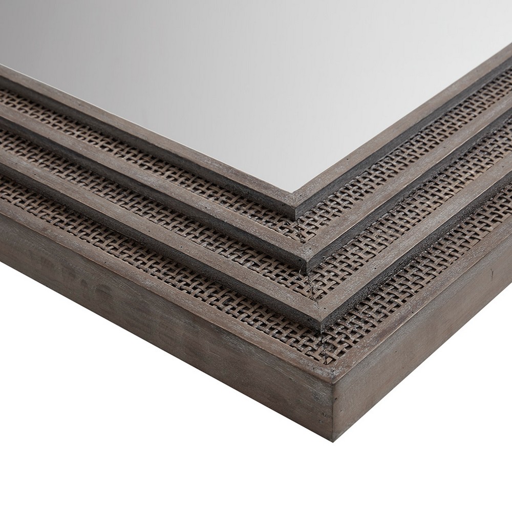 | Martha Stewart See below Overall: 24"W x 34"H x 1.5"D Mirror Spec: 14.5"W x 24.5"H Rattan: 35% Mirror: 35% MDF: 20% Wood: 10% Coastal/Nautical Style Includes 1 Piece(s) • Wipe clean with damp cloth • Do not apply abrasive cleaners Elevate your decor with the Naomi Rectangular Wood and Rattan Mirror, a sophisticated piece from the Martha Stewart Lily Pond Collection. Meticulously crafted with mirrored glass, natural rattan, and solid wood in an opulent gray finish, this mirror epitomizes a tasteful reinvention of coastal aesthetics. Its adaptable orientation, allowing both horizontal and vertical placement, offers effortless versatility for seamless incorporation into any interior scheme. Transform your space with this stunning, indoor-use-only mirror. Spot clean for lasting beauty. |