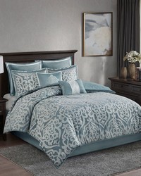 Odette Aqua/Silver 8 Piece Jacquard Comforter Set King