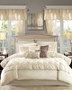 | Madison Park Essentials Cal King 1 Comforter: 104"W x 92"L 2 King Shams: 20"W x 36"L (2) 1 Bedskirt: 72"W x 84"L + 15"D 2 Euro Shams: 26"W x 26"L + 2"D (2) 1 Flat Sheet: 108"W x 102"L 1 Fitted Sheet: 72"W x 84"L + 14"D 2 Pillowcases: 20"W x 40"L (2) 4 Window Curtains: 42"W x 84 Faux silk, tufted, 8 oz/sq yard polyester filling, microfiber sheet set Transitional Modern Style Includes 24 Piece(s) machine washable, spot clean pillows Invigorate your space with the Madison Park Essentials Joella 24 Piece Room in a Bag. The lavish tufted details flaunted on the comforter, shams, and window valances deliver an elegant statement in bold, natural hues. A large border frames the luxurious comforter, adding charm and dimension to the bedding set. Matching shams echo the motif seen on top of the bed, creating an elegant look in your space. An included microfiber sheet set and bed skirt complements the bedding collection and offers exceptional comfort and style. Two Euro shams and four embroidered decorative pillows help to complete the bedding set, giving it a finished look. Accompanying this bedroom set are four window panels with four tie backs to keep curtains drawn open, while two tufted valances provide the finishing touches to your bedroom. This bedding set may come in rolled or compressed packing and will need to be fluffed up. Use a steam iron to help remove wrinkles easier. |