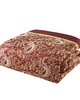 | Madison Park Essentials Cal King 1 Comforter: 104"W x 92"L 2 King Shams: 20"W x 36"L (2) 1 Bedskirt: 72"W x 84"L + 15"D 1 Decorative Pillow: 16"W x 16"L 2 Decorative Pillows: 12"W x 18"L (2) 1 Decorative Pillow: 18"W x 18"L 2 Euro Shams: 26"W x 26"L + 2"D (2) 1 Flat Sheet: 108"W Comforter/Sham: 100% polyester polyoni faux silk face, embroidered, 100% polyester microfiber reverse, 100% polyester filling Bedskirt: polyester polyoni faux silk drop, polyester platform Euro Shams: 100% polyester polyoni faux silk face, 100% polyester Traditional Style Includes 24 Piece(s) machine washable, spot clean pillows The Madison Park Essentials Brystol 24 Piece Room in a Bag provides a total makeover for your bedroom decor. This traditional comforter flaunts a red, brown, silver, gold jacquard paisley pattern with an accenting solid red border to create a luxurious glam look. Matching pillow shams and solid gold tone Euro shams with 2-inch flanges coordinate beautifully with the elegant comforter. A solid red bed skirt and 4 decorative pillows with embroidery and pleating details add the finishing touches to this paisley bedding set. Hypoallergenic polyester filling in the comforter and pillows contains no allergens and is treated to be dustproof. A 4 Piece sheet set is also included to complement the comforter and complete the jacquard bedding set. To elevate your bedroom, 4 solid gold tone window curtains with 2 paisley valances and 2 solid tiebacks are included to perfectly style your windows. Machine washable for easy care, this paisley comforter set may come in rolled or compressed packing and will need to be fluffed up. Use a steam iron to help remove wrinkles easier. Spot clean pillows. |