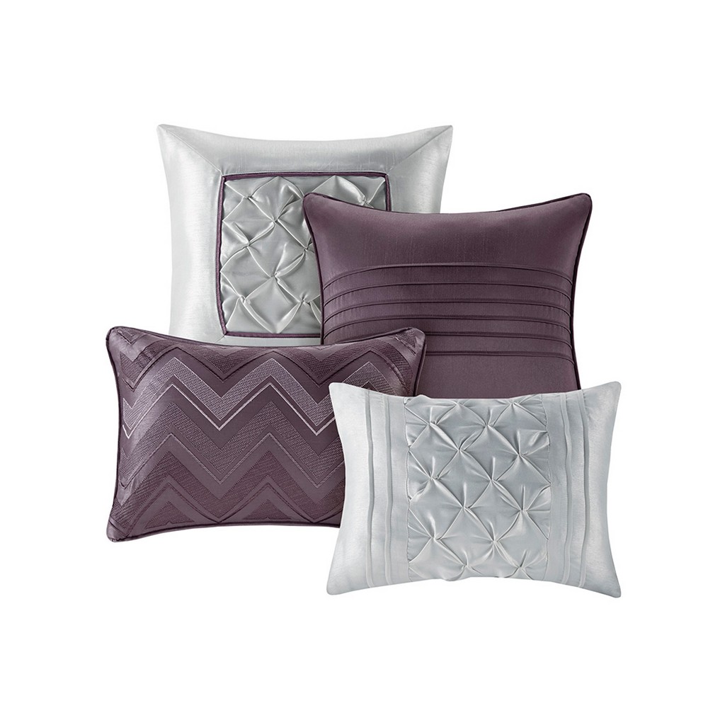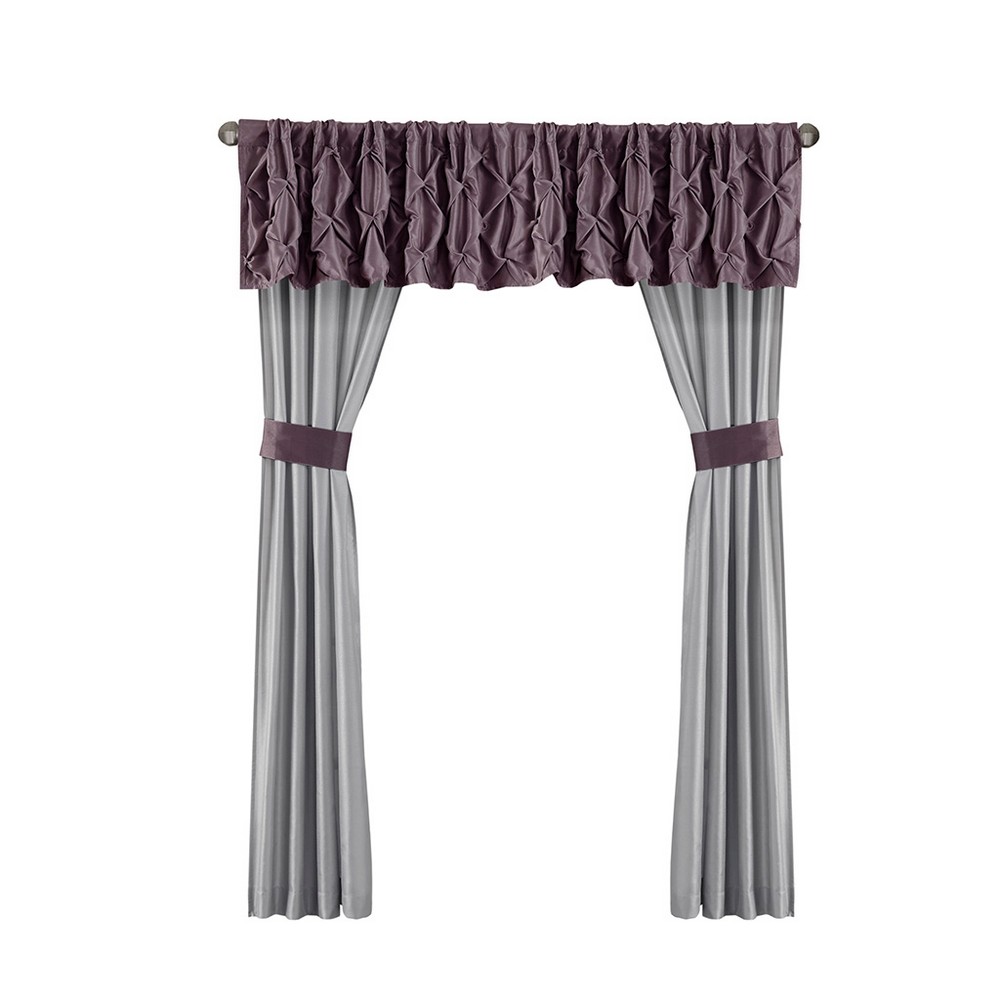 | Madison Park Essentials King 1 Comforter: 104"W x 92"L 2 King Shams: 20"W x 36"L (2) 1 Bedskirt: 78"W x 80"L + 15"D 2 Euro Shams: 26"W x 26"L + 2"D (2) 1 Flat Sheet: 108"W x 102"L 2 King Pillowcases: 20"W x 40"L (2) 1 Fitted Sheet: 78"W x 80"L + 14"D 4 Window Panels: 42"W x 84"L Faux silk, tufted, 8 oz/sq yard polyester filling, microfiber sheet set Transitional Modern Style Includes 24 Piece(s) Machine washable, spot clean pillows Invigorate your space with the Madison Park Essentials Joella 24 Piece Room in a Bag. The lavish tufted details flaunted on the comforter, shams, and window valances deliver an elegant statement in bold, natural hues. A large border frames the luxurious comforter, adding charm and dimension to the bedding set. Matching shams echo the motif seen on top of the bed, creating an elegant look in your space. An included microfiber sheet set and bed skirt complements the bedding collection and offers exceptional comfort and style. Two Euro shams and four embroidered decorative pillows help to complete the bedding set, giving it a finished look. Accompanying this bedroom set are four window panels with four tie backs to keep curtains drawn open, while two tufted valances provide the finishing touches to your bedroom. This bedding set may come in rolled or compressed packing and will need to be fluffed up. Use a steam iron to help remove wrinkles easier. |