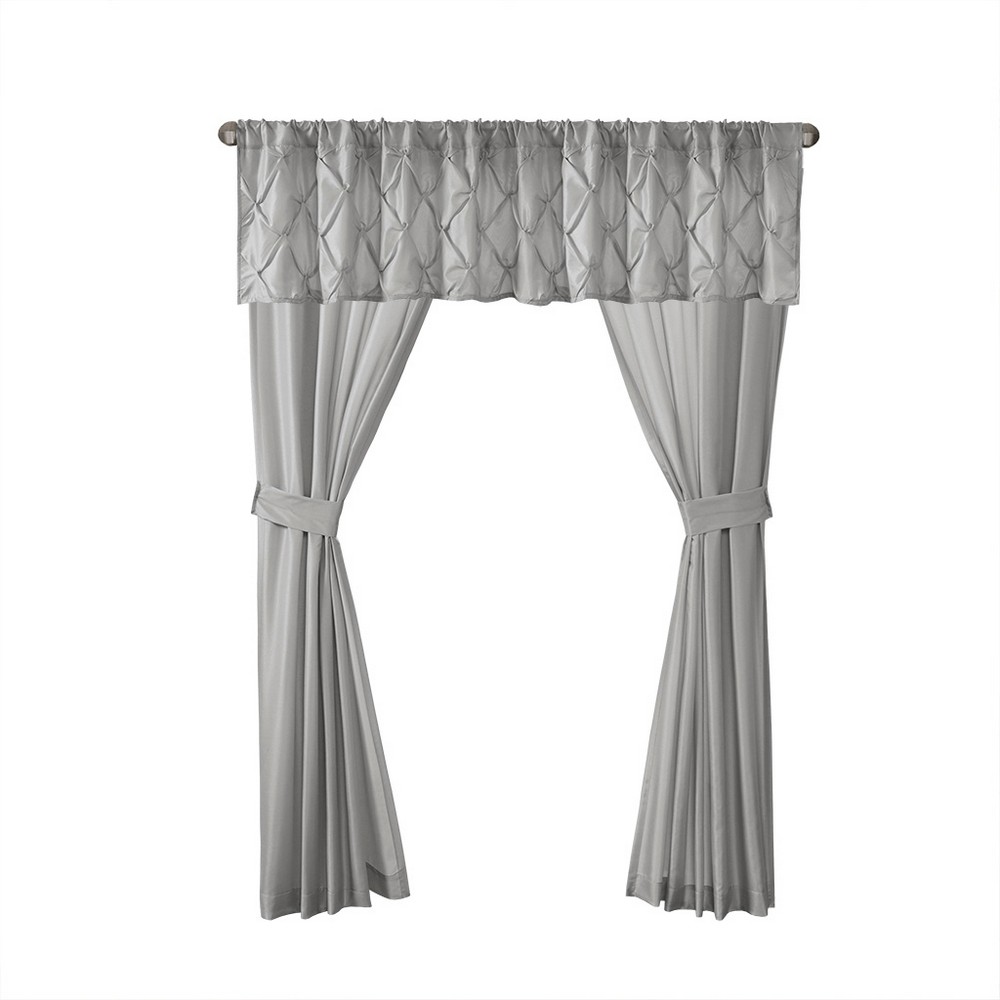 | Madison Park Essentials King 1 Comforter: 104"W x 92"L 2 King Shams: 20"W x 36"L (2) 1 Bedskirt: 78"W x 80"L + 15"D 2 Euro Shams: 26"W x 26"L + 2"D (2) 1 Flat Sheet: 108"W x 102"L 2 King Pillowcases: 20"W x 40"L (2) 1 Fitted Sheet: 78"W x 80"L + 14"D 4 Window Panels: 42"W x 84" Comforter/Sham : 100% polyester polyoni with tufted technique, pieced boarder, microfiber reverse, 8oz/sq yard polyester filling Bedskirt: polyester polyoni drop, polyester platform Euro: polyester polyoni face, microfiber reverse Pillow: polyester poly Transitional Modern Style Includes 24 Piece(s) Machine Washable Spot Clean Decorative pillows Invigorate your space with the Madison Park Essentials Joella 24 Piece Room in a Bag. The lavish tufted details flaunted on the comforter, shams, and window valances deliver an elegant statement in bold, natural hues. A large border frames the luxurious comforter, adding charm and dimension to the bedding set. Matching shams echo the motif seen on top of the bed, creating an elegant look in your space. An included microfiber sheet set and bed skirt complements the bedding collection and offers exceptional comfort and style. Two Euro shams and four embroidered decorative pillows help to complete the bedding set, giving it a finished look. Accompanying this bedroom set are four window panels with four tie backs to keep curtains drawn open, while two tufted valances provide the finishing touches to your bedroom. This bedding set may come in rolled or compressed packing and will need to be fluffed up. Use a steam iron to help remove wrinkles easier. |