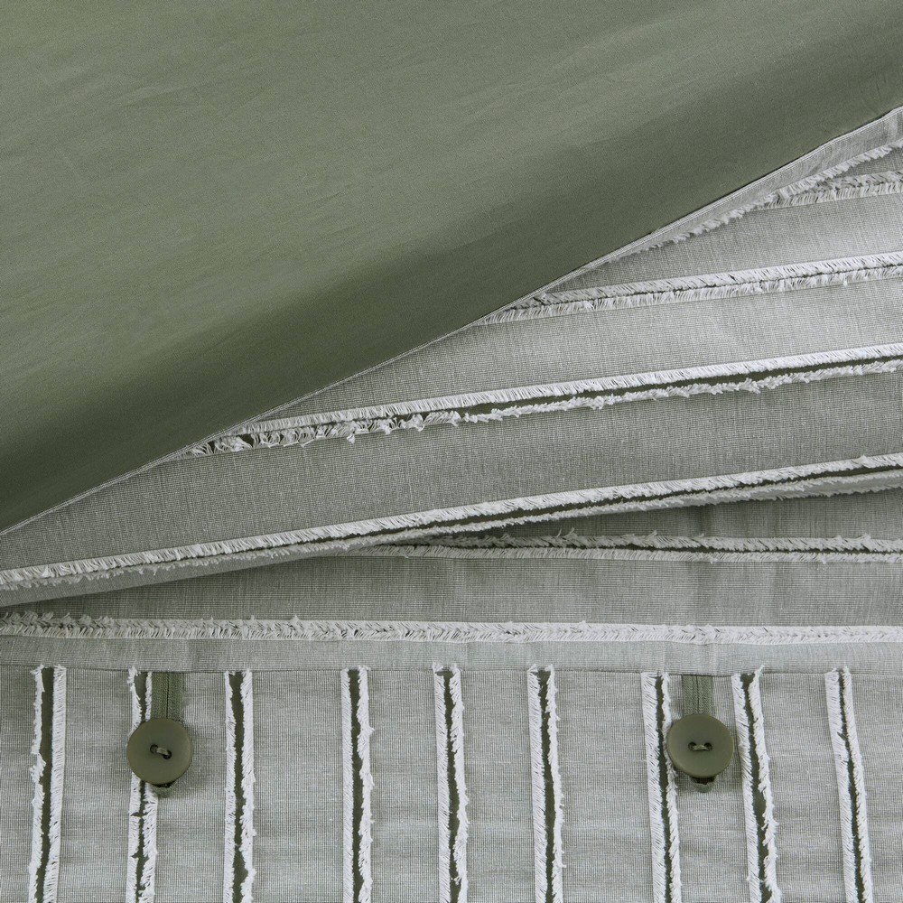 Essence Green Oversized Cotton Clipped Jacquard Comforter Set with Euro Shams and Throw Pillows Queen