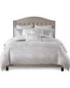 | Madison Park Signature Queen 1 Comforter: 92"W x 96"L 2 Standard Shams: 20"W x 26"L + 2"D (2) 2 Euro Shams: 26"W x 26"L (2) 2 Decorative Pillows: 20"W x 20"L (2) 1 Decorative Pillow: 14"W x 20"L Comforter/Sham face: 100% polyester jacquard with metallic with filled piping around 3 edges Comforter Back: 100% polyester micro fiber Standard sham back: 100% polyester solid jacquard, removable seperate polyester filler inserts ( 300g/sqm ) Euro sham: Glam/Luxury Style Includes 8 Piece(s) Dry Clean The Madison Park Signature Hollywood Glam Comforter Set offers a modern and elegant update to the bedroom. This jacquard comforter flaunts an all-over metallic detailing on the luxurious white base, for glamorous allure. Coordinating shams mirror the motif of the comforter and the Euro shams feature a rich cotton velvet face with embroidered details. Three decorative pillows are embellished with unique embroidery and texture, adding dimension and glam to this lavish comforter set. The oversized and overfilled comforter uses and includes a removable duvet-style insert that is secured by inner ties and a hidden button closure. This provides no visible bartacking lines on top of the bed to create a smooth, clean face. Dry clean comforter cover only and machine wash comforter filler. This bedding set is OEKO-TEX certified, meaning it does not contain any harmful substances or chemicals, ensuring quality comfort and wellness. |