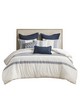 | Madison Park Signature King/Cal King 1 Comforter: 110"W x 96"L 2 King Shams: 20"W x 36"L + 1"D (2) 3 Euro Shams: 26"W x 26"L (3) 1 Square Pillow: 20"W x 20"L 1 Square Pillow: 18"W x 18"L 1 Oblong Pillow: 14"W x 20"L Comforter/Sham: 100% cotton jacquard; cotton solid reverse; Filler: 100% polyester Euro Sham: 100% cotton waffle, cotton duck solid reverse 20" Square Pillow: 100% cotton duck with cord embroidery 18" Squre Pillow: 100% cotton duck printed with embroid Transitional Modern Style Includes 9 Piece(s) Covers: Dry clean Dec pillow: Spot clean Create a cozy farmhouse dream with the Madison Park Signature Murphy duvet-style comforter. Crafted from soft cotton jacquard, this comforter set includes 2 matching shams and 2 waffle euro shams (3 for king size), alongside 3 decorative pillows, all designed to create a warm, inviting atmosphere. Adding an extra level of comfort and texture, the waffle euro shams and throw pillows are perfect for those who appreciate attention to detail. The three decorative pillows come with removable covers that can be easily cared for and feature hidden zipper closures for a seamless aesthetic. Included in this bedding set is an overfilled insert which is firmly held in place by inner ties and concealed button closures. Filled with hypoallergenic polyester, the insert is free from allergens and has been treated to ensure it is dustproof, providing you with a comfortable sleep. For maintenance, we recommend dry cleaning the comforter cover and machine washing the inserts, ensuring your bedding remains fresh and inviting for years to come. |