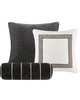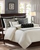 | Madison Park Signature King 1 Comforter: 110"W x 96"L 2 King Shams: 20"W x 36"L(2) 3 Euro Shams: 26"W x 26"L+1.5(3) 1 Decorative Pillow: 20"W x 20"L 1 Decorative Pillow: 18"W x 18"L 1 Neck Roll Pillow: 7"Dia x 20"L Comforter face: 100% polyester solid slub with embroidery back: 100% polyester 95 gsm MF Sham face & back: 100% polyester slub with emboriery on face and filled piping, Removable filler: 100% polyester with 300gram polyfill Style Includes 9 Piece(s) Machine washable Modern Classic Hotel Deluxe Bedding Set - Elevate your bedroom with timeless hotel-style luxury. This luxury bedding ensemble showcases a Greek-inspired meander embroidery border, complete with Euro shams, decorative pillows finished in soft velvet or with embroidery, and a coordinating neck roll pillow with tailored piping. The overfilled and oversized down-alternative comforter, crafted from soft brushed microfiber and filled with 300 gsm, offers cloudlike coziness for year-round comfort and restful sleep. A removable cover with a hidden button closure and inner ties ensures practicality, while OEKO-TEX STANDARD 100 certification guarantees quality and safety. Easy care instructions make maintaining this set effortless, completing the perfect blend of style and functionality. |