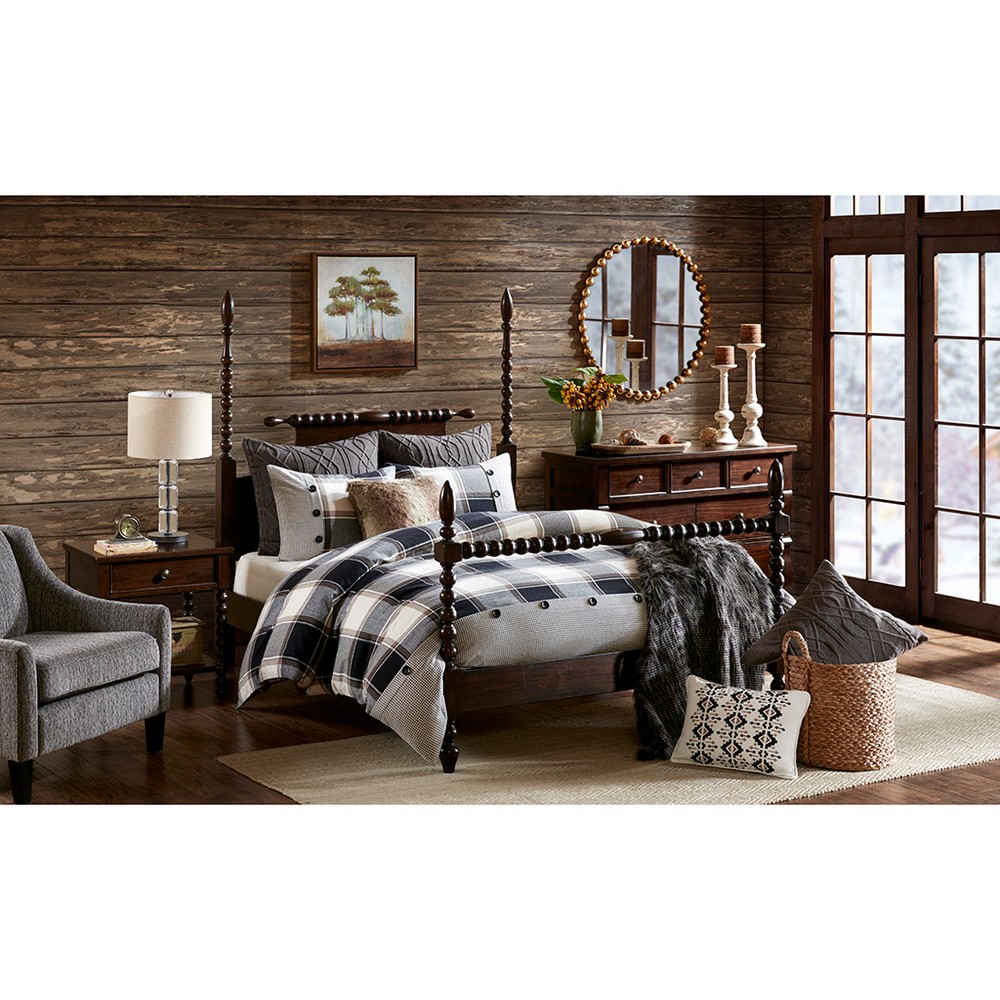 | Madison Park Signature King 1 Comforter: 110"W x 96"L 2 King Shams: 20"W x 36"L(2) 3 Euro Shams: 26"W x 26"L(3) 1 Decorative Pillow: 22"W x 22"L 1 Decorative Pillow: 20"W x 20"L 1 Decorative Pillow: 14"W x 20"L Comforter/Sham face: 100% cotton jaquard Comforter Back: 100% polyester micro fiber Standard sham back: 100% cotton jacquard, removable seperate polyester filler inserts ( 300g/sqm ) Euro sham: Acrylic cable knitted on face and plain on reverse 22" sq Farmhouse Style Includes 9 Piece(s) Comforter: Dry Clean Dec pillow: Spot Clean Elevate your bedroom with the cozy look of our Madison Park Signature Urban Cabin 9 Piece Comforter Set. This cotton jacquard bed showcases a beautiful plaid design that perfectly embodies casual farmhouse style. This set includes 1 comforter, 2 shams 2 (or 3 for King size) euro shams, 2 square, and 1 oblong decorative pillow. The pattern near the bottom of the comforter with button details adds a charming touch to comforter. The three decorative pillows come with removable covers that can be easily cared for and feature hidden zipper closures for a seamless aesthetic. Included in this bedding set is an overfilled insert which is firmly held in place by inner ties and concealed button closures. Filled with hypoallergenic polyester, the insert is free from allergens and has been treated to ensure it is dustproof, providing you with a comfortable sleep. For maintenance, we recommend dry cleaning the comforter cover and machine washing the inserts, ensuring your bedding remains fresh and inviting for years to come. |