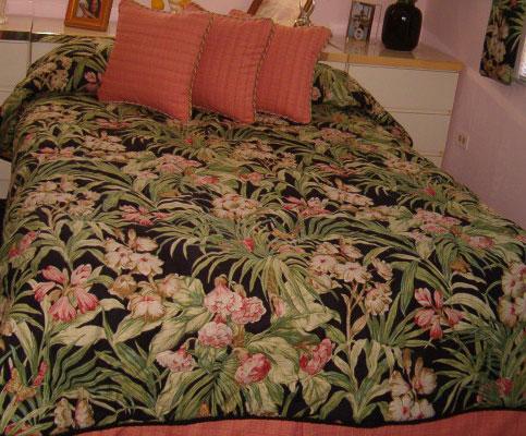 | Hand guided quilting lets the fabric come alive. The quilting is hand guided around the fabric pattern for a truly custom look. This design works well with large distinct patterns. Call 1-800-590-5844 or email us for more information or ordering. |