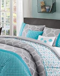 Modern hexagon design in a super soft microfiber make this bright aqua and gray bedding fun and lively. Great for dorm room bedding.
