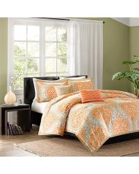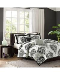 Modern flair is yours with this black and gray damask bedding set. Also available in orange and taupe, this lovely set is machine washable.