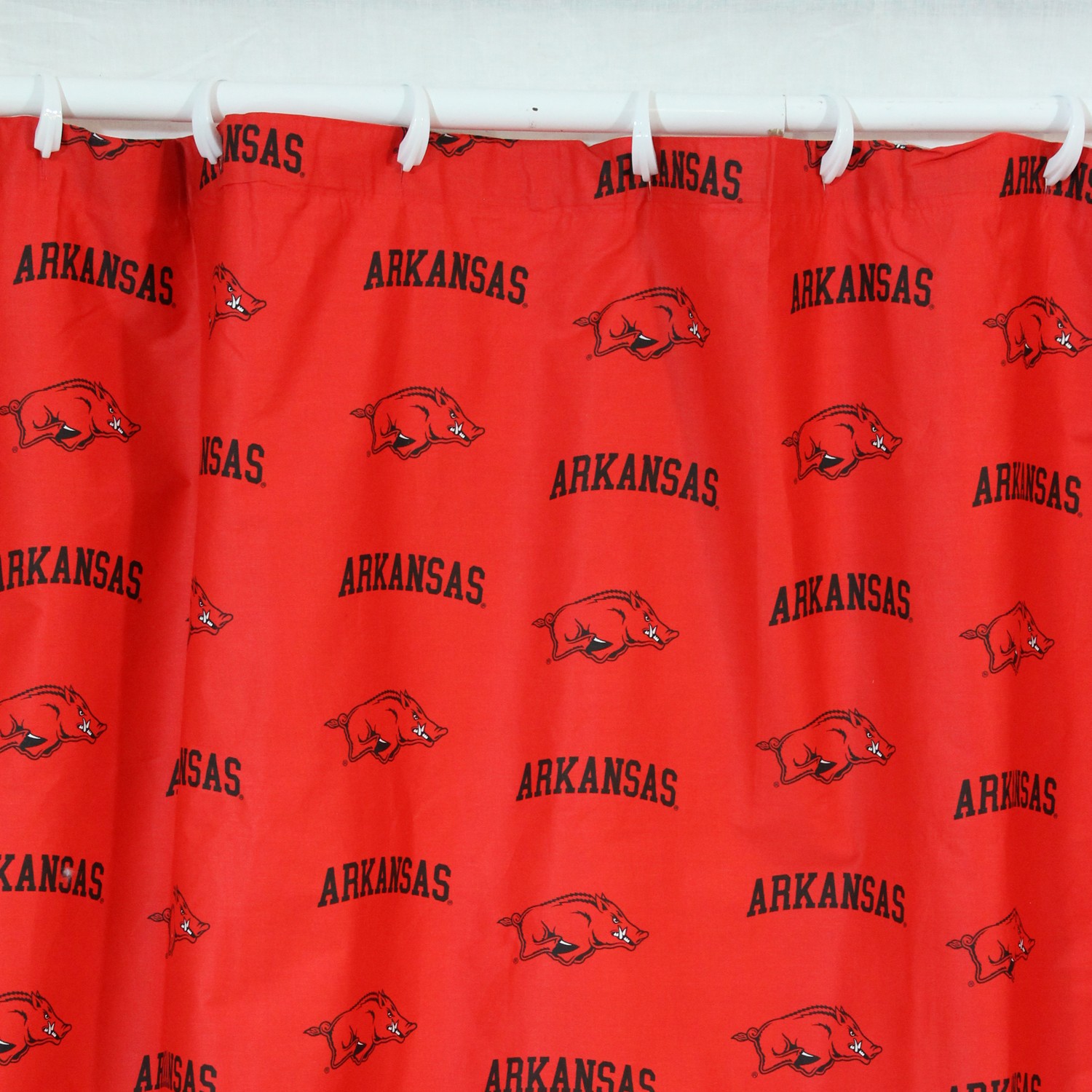 | Arkansas Razorbacks Shower Curtain Measures 72 Inches Wide by 70 Inches Long Shower Curtain Does Not Include Plastic Liner Made with 100 Percent Cotton and Is Machine Washable For Easy Cleaning Provides Privacy and Fantastic Color Shower Curtain Has 12 Buttonholes For Shower Curtain Rings (not included) Machine Wash Cold; Tumble Dry Low |